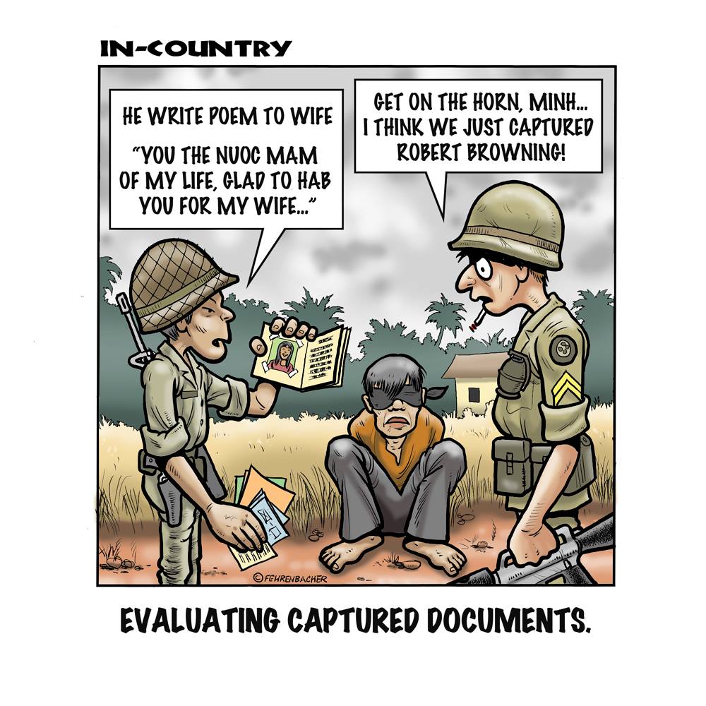 Phil enlisted in the Army in 1965 where you served for years in Vietnam. He became a graphic designer and has worked for the state of Oregon for 26 years. He retired in 2003 and started the Cartoon "In-Country". The cartoons reflect his experiences during his tour of duty in South Vietnam.
